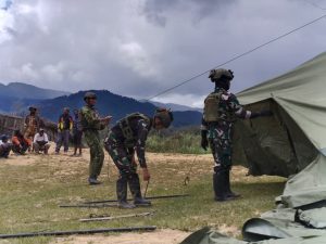 Wujud kepedulian dan semangat pengabdian TNI kepada masyarakat terus ditunjukkan oleh Satgas Yonif 700/WYC. Melalui Pos Gome, personel Satgas melaksanakan kegiatan Binter terbatas berupa karya bhakti membantu warga Kampung Yenggernok mendirikan tenda di halaman Gereja Gome, Distrik Gome, Kabupaten Puncak, Senin (6/10/2025).