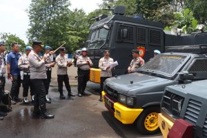 Satu per satu, kendaraan dinas baik roda dua ataupun roda empat serta kendaraan taktis yang digunakan personel diperiksa kelaikannya. Pengecekan itu untuk memastikan kendaraan dalam keadaan siap pakai sehingga dapat optimal melayani masyarakat.
