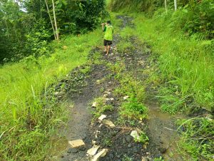 yang kami tau ini dikerjakan setahun yang lalu namun karena kondisinya begini jelek maksudnya warga malas untuk melalui jalan ini karena tidak bisa dipergunakan kondisi rusak parah.