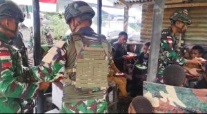 Suasana penuh kehangatan dan kekeluargaan tampak di Pos Kurima Satgas Yonif 521/DY ketika Personel Pos menggelar acara makan bersama dengan anak Papua di Distrik Kurima, Yahukimo, Papua Pegunungan. (2 November 2025)
