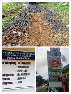 Proyek JUT(MAKADAM) menggunakan anggaran Dana Desa tahun 2025 dengan nominal Rp.100.000.000 menunai sorotan pasalnya masih ada jalan Desa yang rusak , malah anggaran untuk membuat jalan baru sedangkan jalan yang rusak belum ada perbaikan , berdasarkan pantauan di lapangan, proyek tersebut sudah berjalan dengan kegiatan pemadatan jalan Baru menuju Bendungan , Awak media juga sempat mendokumentasikan aktivitas tersebut sebagai bukti awal , dan juga wawancara dengan para pekerja yang ternyata pekerja tersebut berasal dari wilayah Kabupaten Pemalang.