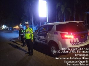 Dalam rangka menjaga keamanan, ketertiban, dan kelancaran arus lalu lintas di waktu subuh, Satuan Lalu Lintas (Sat Lantas) Polres Ogan Ilir melaksanakan kegiatan Patroli Beat Subuh pada Senin (10/11/2025) dini hari. Kegiatan dimulai pukul 03.30 WIB hingga 05.30 WIB di sepanjang Jalan Lintas Timur Indralaya – Palembang hingga perbatasan Kota Palembang.