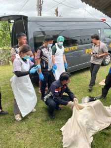 “Jenazah sudah dibawa ke RS Bhayangkara untuk dilakukan visum dan pemeriksaan forensik. Sementara ini belum ditemukan identitas yang melekat pada korban. Kami masih menunggu hasil pemeriksaan dokter forensik,” tambahnya.