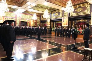Secretary General of Ministry of Defence, Lieutenant General TNI Tri Budi Utomo, presided over the Oath Taking, Inauguration, and Handover Ceremony for Senior Officials within the Ministry of Defence, held at the Bhinneka Tunggal Ika Hall on Thursday (13 November).