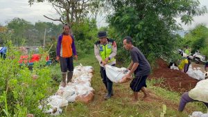 Kegiatan yang melibatkan unsur Polsek, TNI, dan warga ini menjadi upaya preventif guna mengantisipasi kerusakan tanggul yang lebih parah dan potensi banjir.