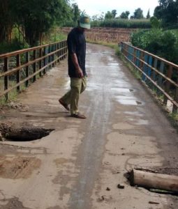 Kondisi jembatan yang berlubang dan membahayakan ini menjadi perhatian serius masyarakat, mengingat fungsinya sebagai akses utama bagi anak-anak sekolah dan para petani yang setiap hari melintasinya.