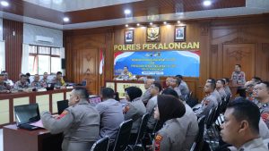 Kegiatan penting ini dilaksanakan di ruang Aula Polres Pekalongan. Acara dipimpin oleh Kapolres Pekalongan AKBP Rachmad C. Yusuf, S.I.K., M.Si., didampingi Wakapolres Kompol Muhamad Nurkholis, S.H., serta dihadiri lengkap oleh seluruh Pejabat Utama (PJU), para Kabag, Kasat, para Kapolsek beserta Kasium jajaran, dan Kaurmintu.