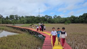 Kini, setelah proses perbaikan rampung, wajah jembatan tampak lebih kokoh dan fungsional. Warga Desa Netampin pun dapat melintas tanpa rasa khawatir, sementara anak-anak sekolah terlihat kembali beraktivitas dengan aman saat berangkat dan pulang menuntut ilmu.