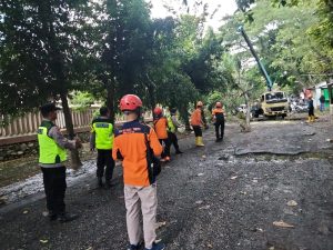 Melihat adanya kabel listrik yang tertimpa, Polsek Kedungwuni segera berkoordinasi dengan pihak PLN Kedungwuni dan BPBD Kabupaten Pekalongan untuk melakukan proses evakuasi yang aman. Sinergi antara TNI, Polri, BPBD, PLN, dan dibantu warga sekitar membuahkan hasil cepat.