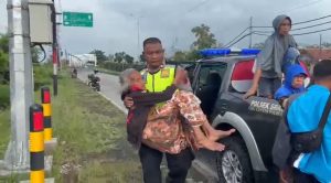 Kapolsek Sragi AKP Turkhan, S.H yang ikut langsung mengevakuasi memastikan seluruh warga rentan menjadi prioritas utama tim gabungan di lapangan.