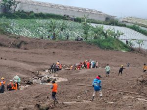 Personel Polda Jabar Gerak Cepat Bantu Evakuasi korban Tanah Longsor dan Banjir Bandang Yang Terjang Desa Pasirlangu Cisarua Kab. Bandung Barat